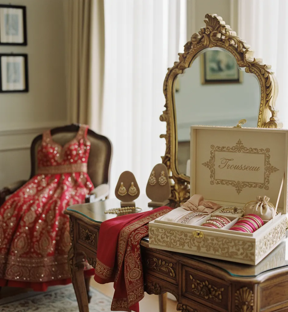 Pre-wedding steam pressing achieved magazine-worthy fall and silhouette for designer lehenga photoshoot.